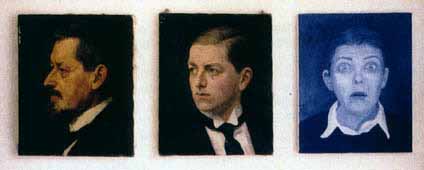 Die Portraits, eigentlich nur eine Leihgabe meiner Mutter, hängen nun - ergänzt durch mein Selbstbildnis - bei mir zu Hause im Esszimmer.