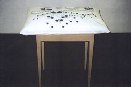 - "STAMMBAUM", 1995, zweiteilig, Acryljuwelen auf Kissen gestickt