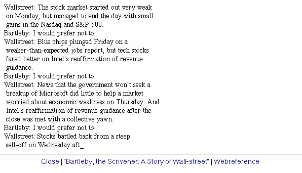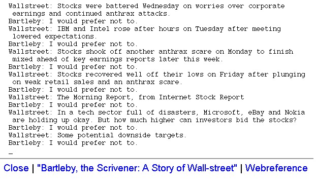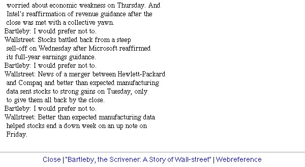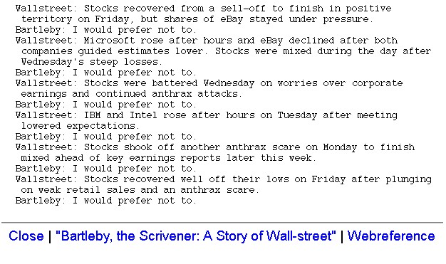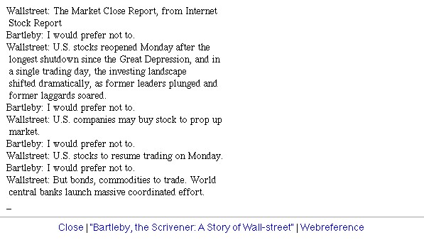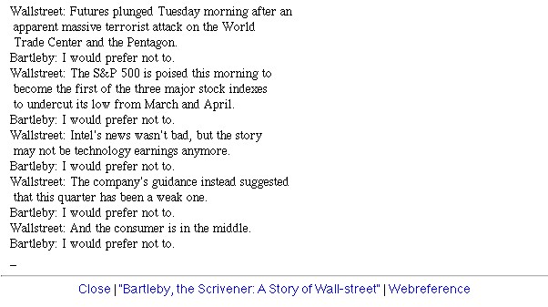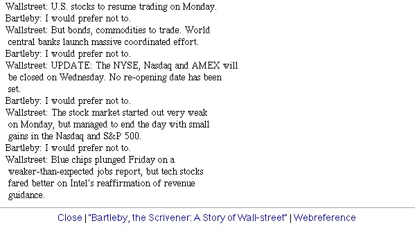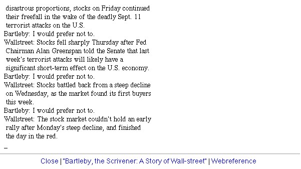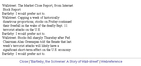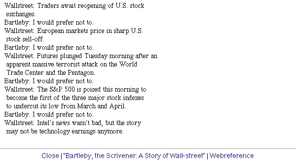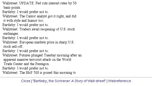 | Bildschirm-Aufnahmen des Bartleby-Börsentickers nach dem 9/11 | ||