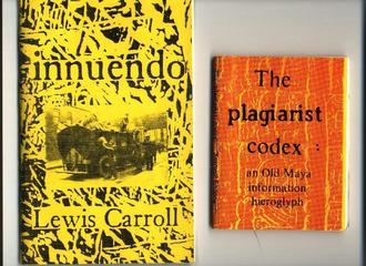 Sichtet man Archive und Anthologien der Mail Art, so stellt man in der Tat fest, daß ihr Gros sich im epigonalen Imitieren von Fluxus und Konzeptkunst erschöpft, diese Epigonalität aber nicht eingesteht und deshalb auch nicht als künstlerische Strategie zu deklarieren weiß. So konnten die Festivals of Plagiarism, SMILE, VAGUE und PhotoStatic/Retrofuturism mit ihren Aufrufen zum Plagiat und zu einem Kunststreik von 1990 bis 199 die Mail Art mit unbequemen Fragen konfrontieren. Umgekehrt galt jedoch auch. Die Plagiats-Kampagnen benötigten eine Ästhetik und waren, da sie den Kunstbetrieb anvisierten, auf künstlerische Mitstreiter angewiesen. Die Mail Art-Künstler standen hierfür bereit, und ihre Ästhetik vereinnahmte die Festivals of Plagiarism. Zwei Druckschriften, die das amerikanische Künstlerduo Xexoxial Endarchy (Liz Was und Miekal And) 1988 für das erste Festival of Plagiarism herstellte, veranschaulichen diese Problematik (Abb. 2.7). Die erste Schrift ist ein falsches Lewis Carroll-Buch, die zweite ein gefälschter Maya-Codex als vorgeblich ältestes Manifest künstlerischen Plagiatorentums. Bereits die fotokopierten Einbänden lassen keinen Zweifel, daß es sich hier nicht um ambitionierte Fälschungen, sondern typische, unschwer identifizierbare Mail Art handelt, obwohl selbst mit den beschränkten technischen Mitteln der Xerographie der Eindruck einer Raubkopie eines verschollenen oder unter Verschluß gehaltenen Manuskripts leicht herzustellen gewesen wäre.