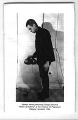 Das ,,Copy Culture``-Heft von New Observations enthält, neben der Homer-These, auch einen Bericht vom Festival of Plagiarism in Glasgow 1989 (Abb. 2.1), dem fünften und letzten einer Reihe von Veranstaltungen, die 1988 in London begonnen und sich in San Francisco, Madison und Braunschweig fortgesetzt hatte. Die Form kleiner selbstorganisierter Festivals war selbst plagiiert von den Apartment-Festivals des Neoismus, einer Subkultur, die mit multiplen Identitäten experimentiert hatte und sich personell zum Teil mit den Plagiatisten überschnitt. Die neoistischen Apartment-Festivals wiederum plagiierten die Fluxus-Festivals der 1960er Jahre. Eine SMILE-Ausgabe, die zum Glasgower Festival erscheint, manifestiert diese Anleihen (Abb. 2.2). Die Schlagzeile ,,Demolish Serious Culture`` plagiiert ein Spruchband des Fluxus-Künstler Henry Flynt, der damit 1964 gegen ein Stockhausen-Konzert im New Yorker Lincoln Center demonstriert. (Tatsächlich enthält das SMILE-Heft ein Interview mit Flynt.) Das Titelfoto plagiiert Drip Music, eine frühe minimalistische Performance des Fluxus-Künstlers George Brecht (Abb. 2.3). Hierzu passend wurden für den sechsten Tag des Glasgower Festivals plagiierte Fluxus-Aktionen angekündigt. Genau diese plagiatorischen Bezugnahmen auf selbst marginale Kunstformen aber erwiesen sich als problematisch für ein Projekt, das mit seiner Plagiats-Rhetorik den etablierten Kunstbetrieb herausfordern und das Verständnis von Kunst hinterfragen wollte.