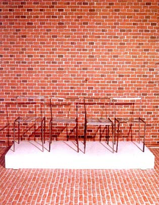 Franz West, Passstücke und Möbel seit 1980er Die Passstücke, die West erstmals 1980 ausstellt, sind Basis der Skulptur als Partizipationsgegenstand. In der Tat sind Wests Skulpturen nie eigenständige, abgeschlossene Werke. Erst durch die Interaktion mit dem Betrachter wird die Skulptur komplettiert und erfüllt ihr Potential. Diese Interaktion kann physischer Natur sein oder auf geistiger Ebene stattfinden. Bei den Passstücken sowie auch bei den Möbeln, die er in den achtziger Jahren als Weiterentwicklung des Konzepts der Passstücke herzustellen beginnt, sollen die Werke jeweils „benutzt“ werden. Was bei den Passstücken mit absurden Gesten und improvisierten Bewegungsabläufen erarbeitet wird, kann auf den Möbeln durch Innehalten und Nachdenken erfüllt werden. Die von Franz West als „legitime Skulpturen“ bezeichneten Objekte führen zu ihrer Vervollständigung über das Verfolgen von Ideen und Assoziationsketten, die durch ihre Betrachtung ausgelöst werden. Das Benutzen von, das Nachdenken über und das Verweilen auf Wests Objekten sind Gegenstand seiner Kunst, welche die Gegenständlichkeit der Werke dem Betrachter und seiner Umgebung gegenüber stellt. In seinen Environments, worin verschiede Werkgruppen zu einem erfahrbaren Umfeld zusammen gefügt sind, können diese verschiedenen Aspekte im Rahmen einer Ausstellung aufeinander treffen. |